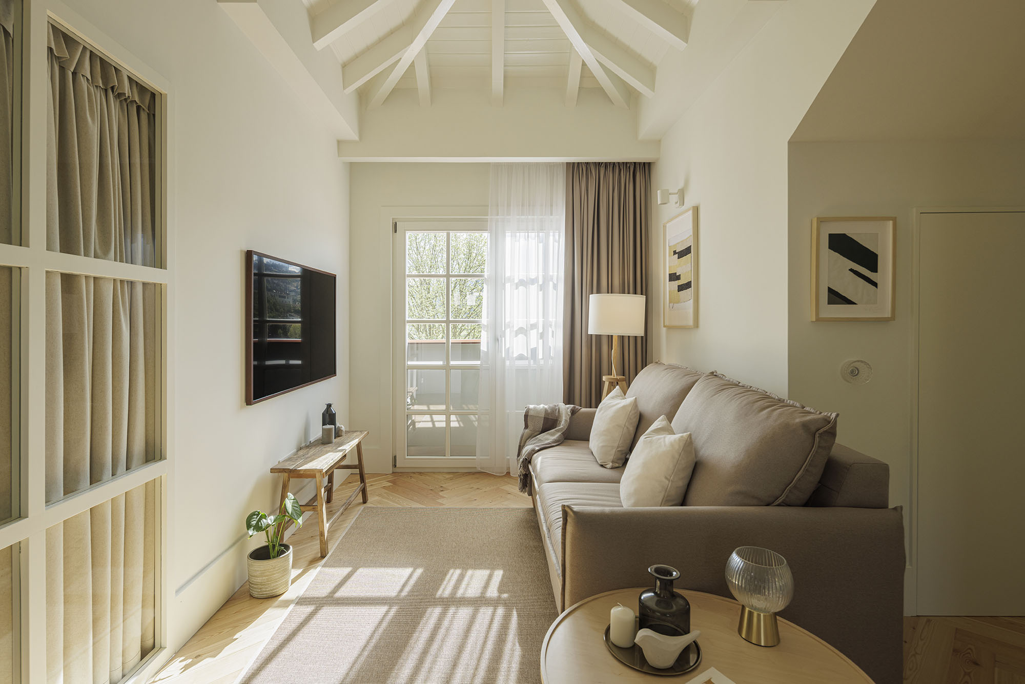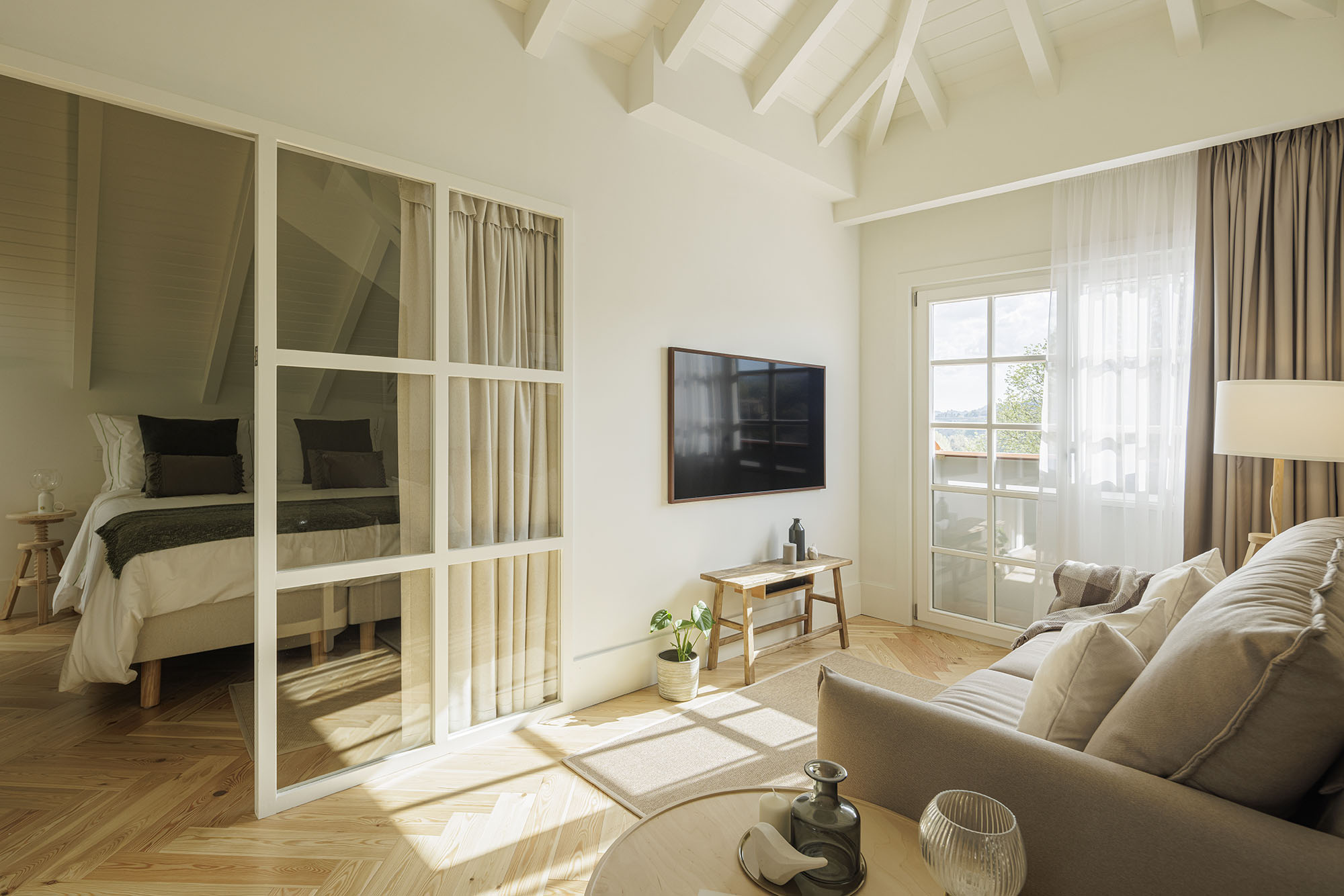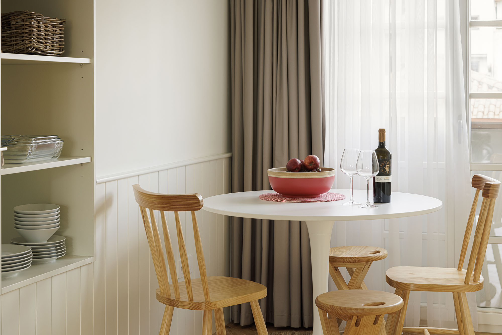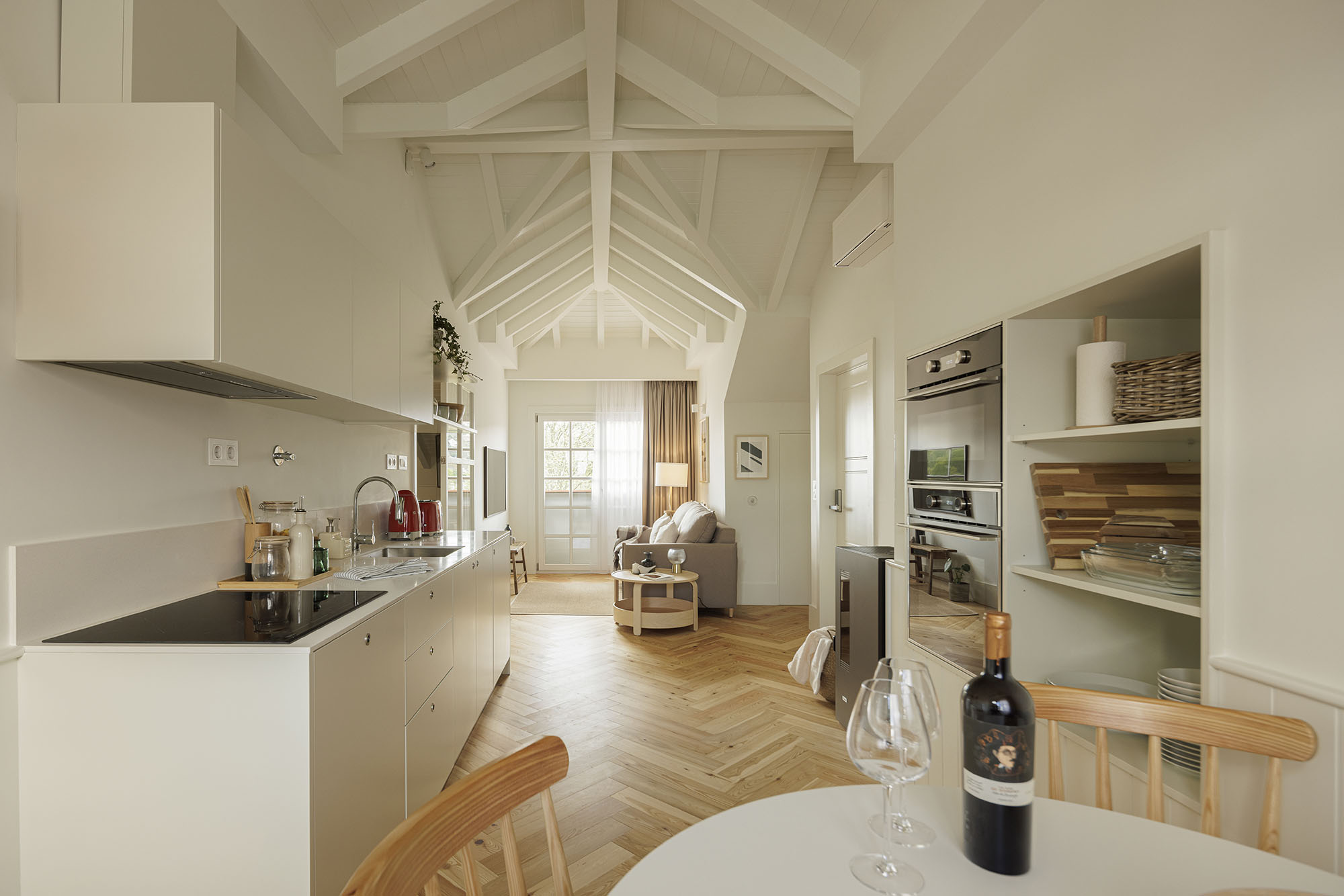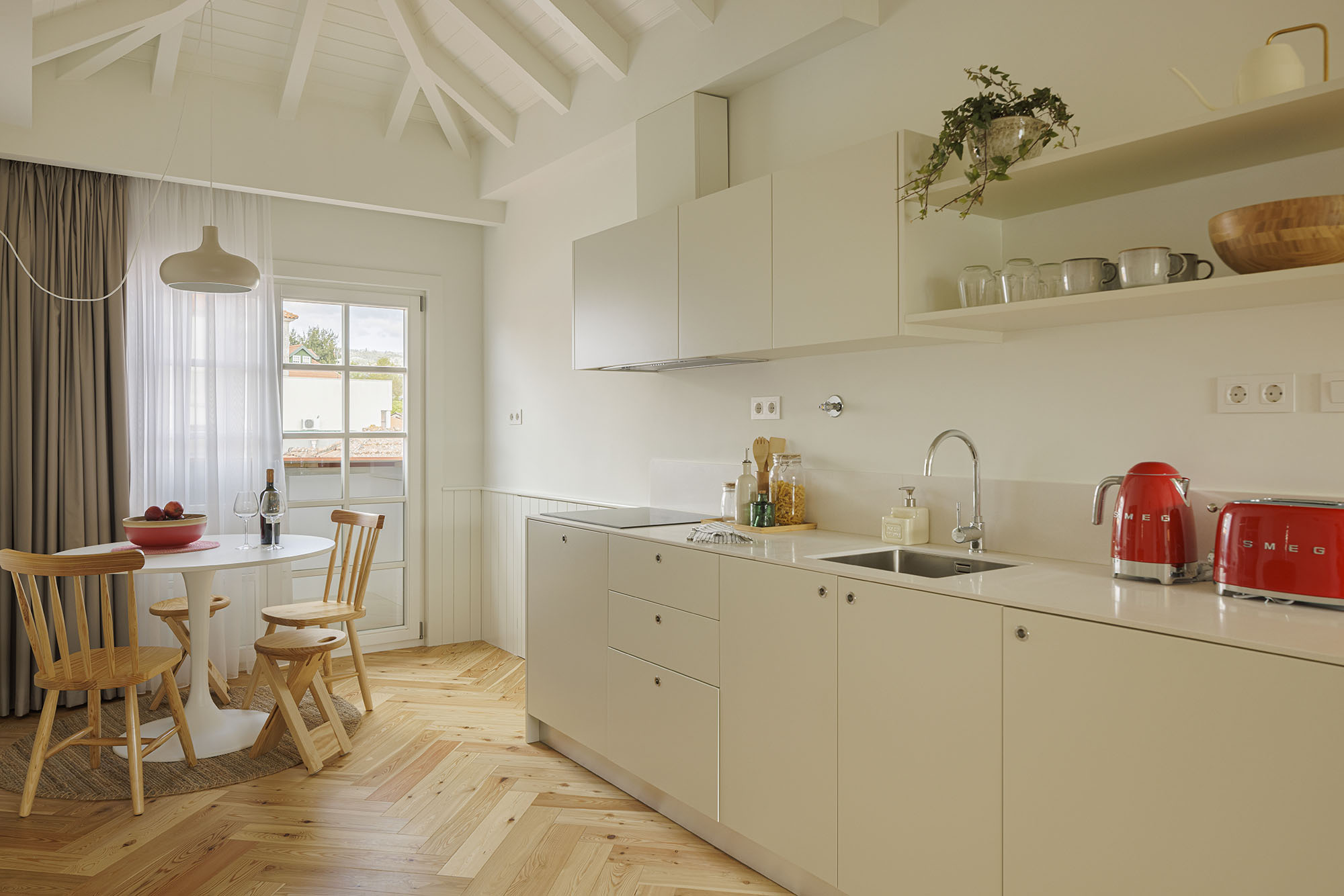 A room with a breathtaking view of the river. It has a fully equipped kitchen so you can prepare all your meals. One king-size double bed or two twin beds. In winter, you can switch on the pellet stove. The apartment also has air conditioning.